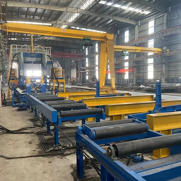 Garis kumbang 3-ing 1 Hok minangka fungsi gabungan saka R Beam, T-Beam Majelis, welding lan cacat flange lan flatting sing terus-terusan sawise welding. Kanthi mangkono bisa nyadari hocs H Beam lan T Beam Production.K duwe kaluwihan ing ngisor iki: Operasi prasaja, biaya kurang tenaga kerja lan wilayah sing kurang.