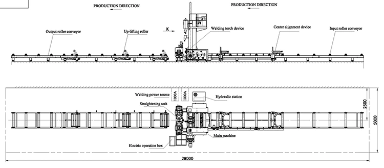 Garis welding zHJ3-in 1 H dumadi saka siji meja roller input, stasiun sing lurus, Web Standard ing ngisor iki kalebu sumber daya fluks, stasiun hidrauler lan kotak hiduLop.
