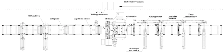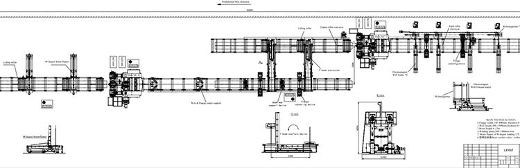 Based on above, we can add one set of 90 degrees beam flipper on the output roller table for overturn the welded beam in horizontal position.