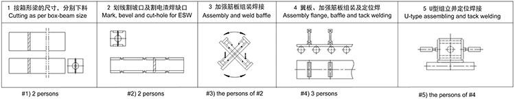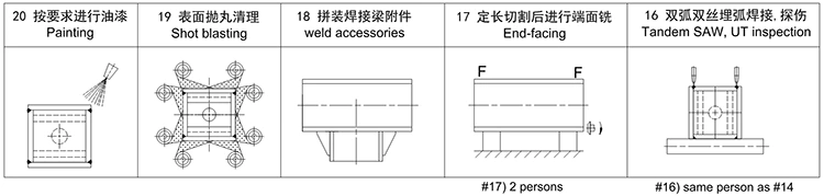 Ing ngisor iki yaiku grafik aliran produksi kanggo produksi saka piring nganti H Beam lan pemeriksaan pungkasan.